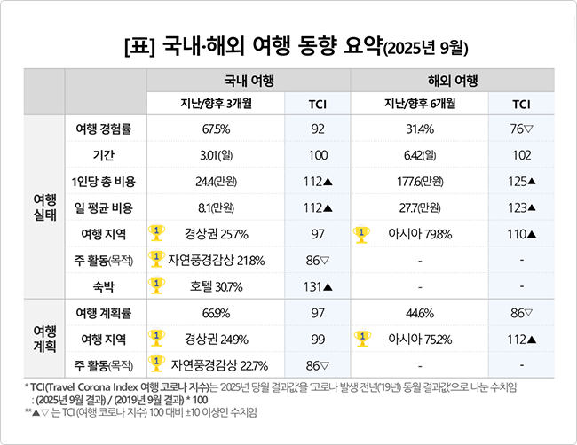 2025년 9월 국내·해외 여행 동향 분석 조사요약
